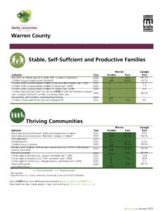 Georgia tracks 51 Indicators of Child Well-Being in five result areas that support our vision for a Georgia where all children are healthy, primed for school, and succeed when they get there; that all families are stable, self-sufficient, and productive; and that every community is vibrant, robust, and thriving.